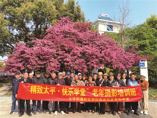 太平街道南泉社区老年学堂推出“春之韵”主题摄影实践课,让学员们将理论转化为实践,灵活运用构图取景、光影捕捉等技法,用手机镜头定格盎然春意,在沉浸式创作中提升艺术感知力。