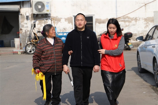 “16年了,我又回到了这里。”近日,38岁的盲人按摩师罗市雄在志愿者的搀扶下来到横峰街道前陈村,与16年前的救命恩人陈秀娥(图左一)重逢。