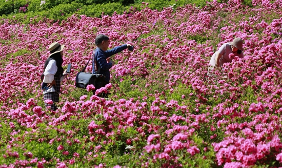 眼下,市区烈士山公园的杜鹃花迎来盛花期,演绎着“岭上开遍映山红”的诗意画卷,吸引众多市民前来踏青赏花,成为春日里热门的“打卡地”。
