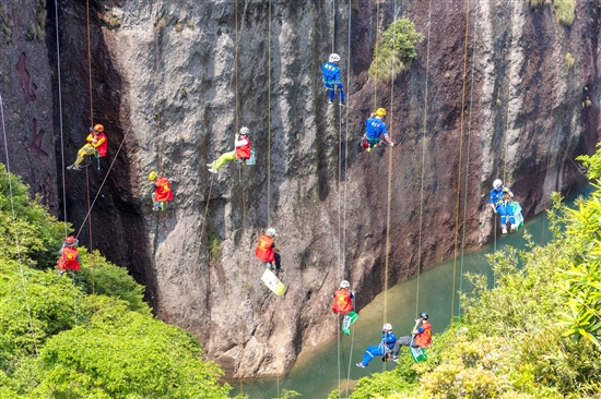4月22日是第56个世界地球日。当天上午,蓝天救援队和慈善义工安邦服务队的志愿者们,在方山景区开展悬崖垃圾清理活动。