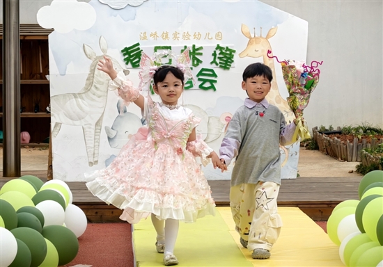 4月17日,在温峤实验幼儿园举行“春日帐篷花语会”创意走秀活动,萌娃们身着花草元素的服装,头戴花环,手捧鲜花,化身“小花仙”穿梭在舞台上,演绎出独属于春天的生机与活力。