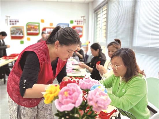 四月芳菲未尽,牡丹倾城而来。月河社区组织了一场与牡丹的千年之约,20余位社区女性用五彩扭扭棒制作出属于自己的那朵牡丹,大家一起共话牡丹,感受牡丹的独特内涵。