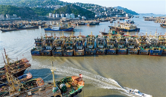 4月29日,石塘镇钓滨渔港里,准备休渔的渔船陆续进港停靠。