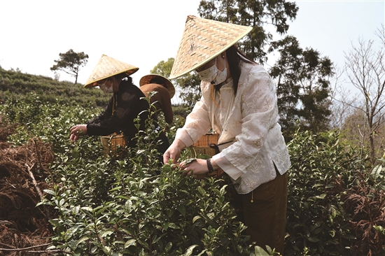 本报讯(通讯员张鲜红文/图)“今天第一天采摘,上午就摘了约2.5斤嫩芽,预计今天能有130元收入。等明后天摘顺手了,赚得肯定更多。”近日,在太平街道杨梅坑仙客岩生态茶园内,65岁的杨阿婆头戴斗笠,腰挎背篓,穿梭于茶树间,熟练地采摘刚抽出的“一叶一针”嫩芽。