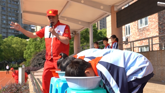 “闭气10秒就难受得不行!”在防溺水体验区,学生们将脸浸入水盆模拟溺水窒息,随着时间推移,不少学生坚持不住抬头猛喘气。五年级学生吴漾说:“憋气时感觉快窒息了,以后游泳一定要有家长陪同。”救援队队员结合真实溺水案例,警示学生远离危险水域。