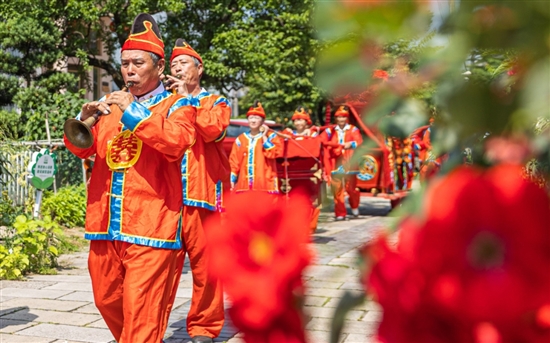 花轿迎亲民俗表演。
