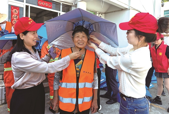 近日,市政协科协界的委员们化身充满爱与希望的“圆梦使者”,携手市慈善义工走进横峰街道与石桥头镇,开启了一场意义非凡的夏日送清凉行动。他们首先来到横峰街道环卫基地。户外骄阳似火,环卫工人仍要坚守在岗位上,用辛勤的劳动维护城市的整洁与美丽。委员和义工们带着满满的关怀,为环卫工人送上100把遮阳伞。这些遮阳伞宛如夏日里的一片片绿荫,为环卫工人抵御炎炎烈日,让他们在户外作业时不必再被烈日炙烤。