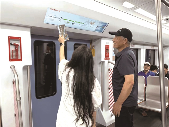 开大教师向老年学员介绍如何查看轻轨站点。