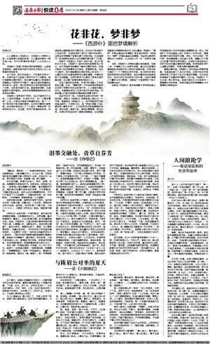 卷四《集灵》也提到静。“茅檐外,忽闻犬吠鸡鸣,恍似云中世界;竹窗下,惟有蝉吟鹊噪,方知静里乾坤。”译注也很喜欢:“茅草屋外,忽然听到几声鸡鸣狗吠,恍恍惚惚觉得好像是生活在远离尘嚣的云中世界;竹窗下静坐读书,只听到蝉鸣鹊唱,才知道宁静之中的天地如此之大。”