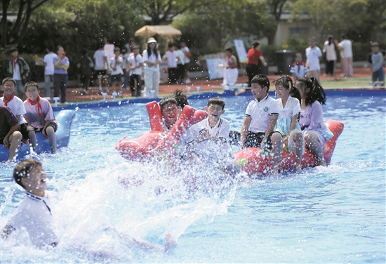 温峤二小组织全校各民族学生在互动竹竿舞、龙舟竞技与美食文化集市中,触摸中华民族传统文化的多元脉络,体验不同民族的文化魅力。
