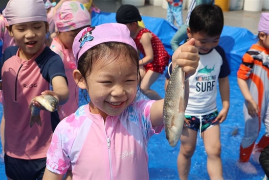 “六一”前夕,城西街道幼儿园开展“清凉一夏·童梦起航”活动,打造欢乐天地。活动设水果捞、赶鸭子、捉鱼等特色环节及水枪大战等水上项目,让孩子们在玩乐中锻炼能力、增强协作,感受节日的快乐。通讯员 季雨露 摄