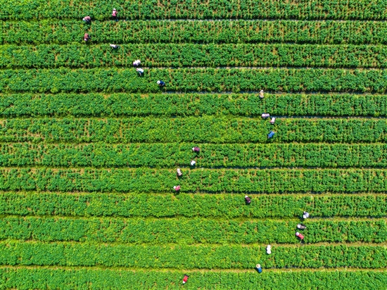 6月4日,芒种节气前夕,在石桥头镇土坦新村,当地农民正在田间除草、间苗。