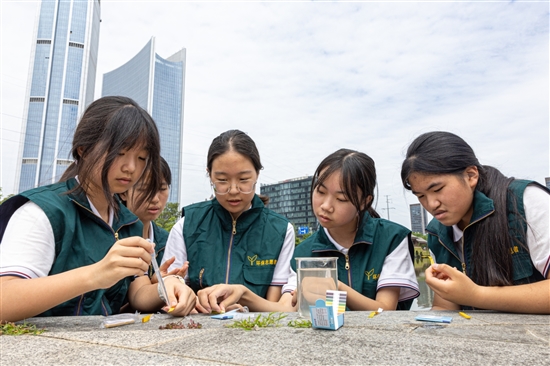 6月5日,市九龙学校的学生们走出学校,开展整治校园周边环境、勘测九龙湖水质以及致敬“城市美容师”等系列活动,用实际行动践行环保理念。