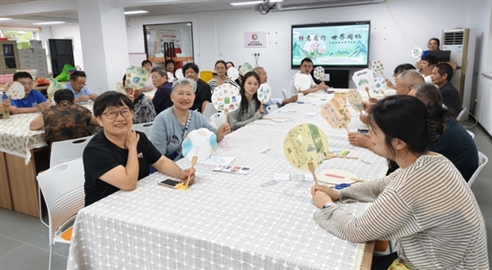太平街道太平社区开展“绿意扇行 世界同栖”环境日活动,居民们一起绘制环保主题棉布扇,创作环保标语。