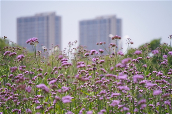 进入6月,九龙汇公园内成片的马鞭草迎来最佳观赏期。清风拂过,淡紫色的花朵轻轻摇曳,为初夏时节渲染出梦幻而浪漫的色彩。
