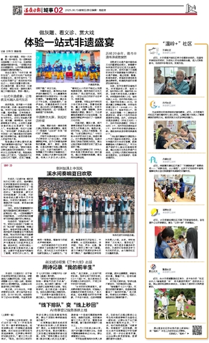 现场最出乎群众意料的是“陆氏脾胃病中医疗法”“章氏骨伤疗法”非遗义诊。“原来中医和正骨也是我们的非遗项目。”市民林女士正好肠胃不适,现场就找传承人开了药方。“这场活动不仅让我们开了眼界,还送了健康,非常不错。”林女士说。