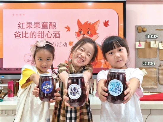 近日,太平街道太平社区举办“红果果童酿,爸比的甜心酒”父亲节主题活动,让孩子们用家乡味道向爸爸表达爱意。