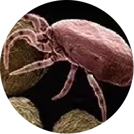 螨虫叮咬人体后皮损为圆形红色斑疹、丘疹或丘疱疹,中心可见到针尖大小的疹点,少数可为大小不等的风团,顶端可有小疱。