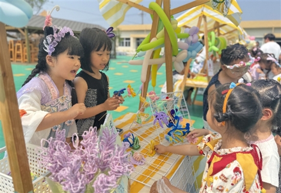 近日,箬横镇第二幼儿园东浦园区编织节集市开市。孩子们化身创意小工匠,亲手编织出绚丽多彩的发箍、萌趣十足的发夹、夏日必备的草帽,还有充满梦幻色彩的捕梦网。这些凝聚着童真与巧思的手工作品,在集市上闪亮登场,学生们可以通过在校期间积攒的葵星币进行交易。