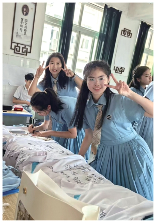 市四中的同学们在毕业离别之际,纷纷铺开自己穿了三年的校服邀请同学签名,以此表达对同学的不舍之情。