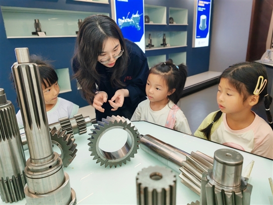 随后,孩子们走进检测实验室,近距离观察各类检测设备,技术人员还演示了齿轮精度检测仪的操作使用。在产品展示厅,孩子们一头扎进“齿轮的王国”。从拇指大的精密齿轮到直径1米的巨型齿轮,从常见的圆形齿轮到特殊形状的异形齿轮,展品琳琅满目。看着满墙的专利证书和创新奖状,孩子们惊叹道:“原来,我们温岭能造这么厉害的齿轮!”