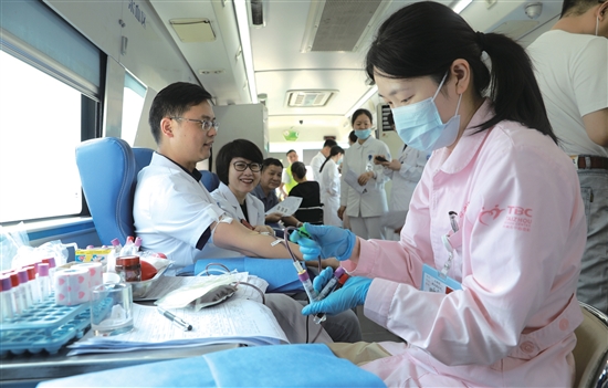 近日,一场无偿献血活动,在浙江省肿瘤医院台州院区的门诊广场上火热开展。“离别前,能为‘第二故乡’献热血,是我的荣幸。”总院专家、病理科学科主任朱梁,用自己的行动默默支持这次活动。据统计,当天共采集血液59个单位,总计11800毫升,为保障临床用血贡献了坚实力量。