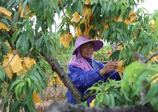 受气候环境影响,今年桃子上市时间比往年迟半个月左右,7月5日才刚刚迎来成熟高峰期。趁着雨水暂停的间隙,金志明穿梭在桃林中,抓紧时间进行采摘,争取挽回10余万元损失。“只要不是太大的风力和暴雨,没成熟的桃子应该没事,但成熟的桃子就避免不了落蒂、烂心的风险。”金志明说,被强风折断的桃树上有不少成熟的桃子,摘桃工人下午就来,今天之内就能采摘完毕。