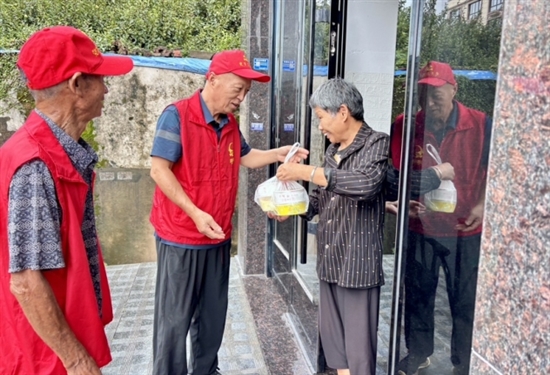 在泽国镇文昌社区,老党员们心系独居老人安危,顶风冒雨,将热乎饭菜与安心送到他们家门口,在风雨中筑起守护长者“舌尖安全”与生活安宁的坚实屏障。