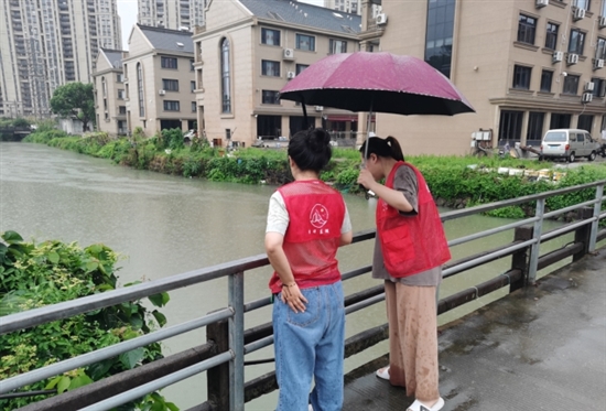 城东街道东湖社区工作人员从低洼路段到地下车库,从排水口到居民阳台,都一处处仔细排查。