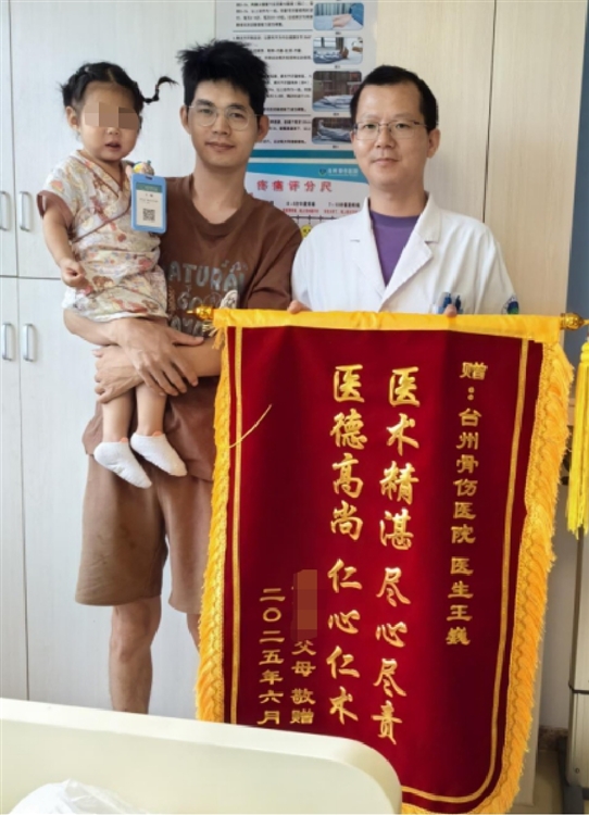 大约一个月前,刚满1岁6个月的小伊(化名),被切割机意外切断右手中指。父母心急如焚,带着孩子和断指辗转多家医院,却因孩子年龄小、血管纤细,均被告知“无法再植”。绝望之际,他们得知台州骨伤医院在断指再植领域技术领先、经验丰富,抱着最后一丝希望前往该院。