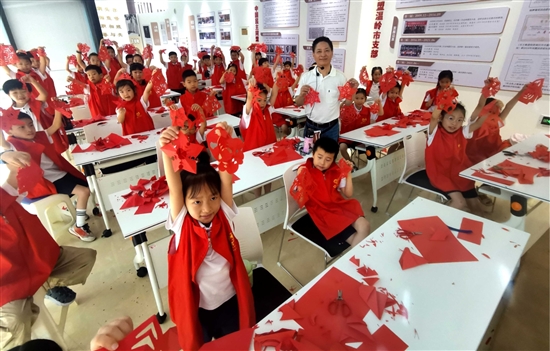 近日,九龙小学开元校区一(2)班学生走进王伯敏艺术史学馆,参与“追光之旅”非遗剪纸体验活动。 孩子们在动手实践剪纸技艺的过程中,感受非遗魅力,增进对传统文化与时代精神的理解。