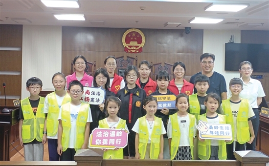 为增强辖区儿童法治观念,近日,城东街道湖心社区联合社区妇儿驿站带领小居民走进市人民法院第二十四法庭,开展模拟法庭活动,为孩子们带来别开生面的法治教育体验。
