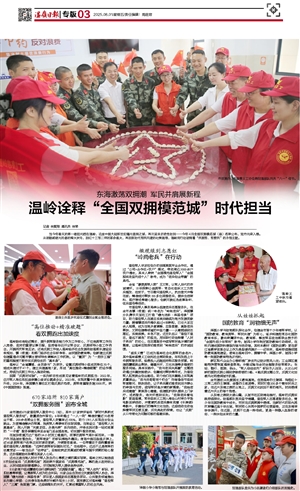 回顾“双拥时间轴”,一系列标志性成果见证着温岭的双拥担当:2022年,召开军人地位和权益保障公益诉讼圆桌会议。2023年,实现武警中队营房智能化升级。2024年,泽国镇丹崖社区打造双拥示范街,拥军商圈服务超3000次,获《中国国防报》报道。