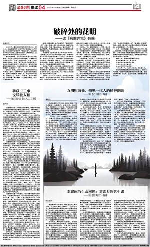 文学是带着“悲天悯人”气质的独立个体。读《病隙碎笔》的五年间,它向我缓缓展开了一幅宏大而简约的“人间道”图景:破碎的青春不因残疾而黯淡,深沉的爱充盈着这真实而滚烫的人间。这不仅需要非凡的毅力,更需要对生命本质高度自觉的洞察与飞蛾扑火般的勇气。就像有人说的那样,灵魂高翔于万仞之上。