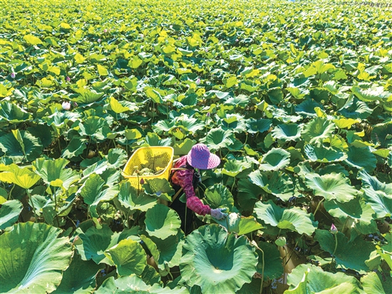 近年来,土坦新村的荷塘成为村民的“致富塘”,集种植、加工、休闲、观光于一体,每年不仅为种植户带来收益,还带动当地闲置劳动力就业增收。
