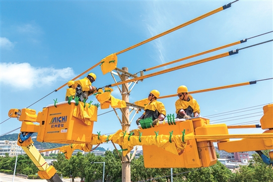 为确保居民清凉度夏,国网温岭市供电公司全力开展迎峰度夏保供电工作,用带电作业的“辛苦指数”换来温岭居民的“幸福指数”。截至7月底,共完成带电作业1686次,减少停电29.8万时户。