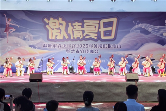 本报讯(记者叶琳 通讯员张隆文/图)近日,由共青团温岭市委员会主办、市青少年宫承办、俞明德工作室联合举办的“激情夏日”2025年暑期汇报演出暨禁毒宣传晚会,在市九龙湖城市驿站上演。全市数百名青少年与家长齐聚一堂,在艺术盛宴与互动体验中,收获了一堂生动的禁毒教育课。