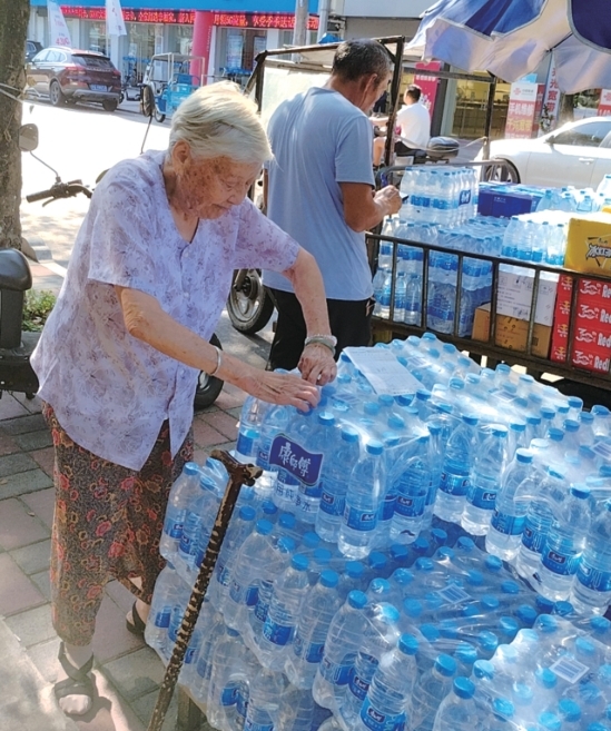 谢阿婆因行动不便靠轮椅出行,却坚持当天亲自到场。家人从车上逐一搬下矿泉水时,她坐在一旁静静注视,眼神里满是欣慰。“天气太热,环卫工人、外卖员太辛苦,我就想尽点心意。”谢阿婆朴实的话语里,是对户外工作者的牵挂。