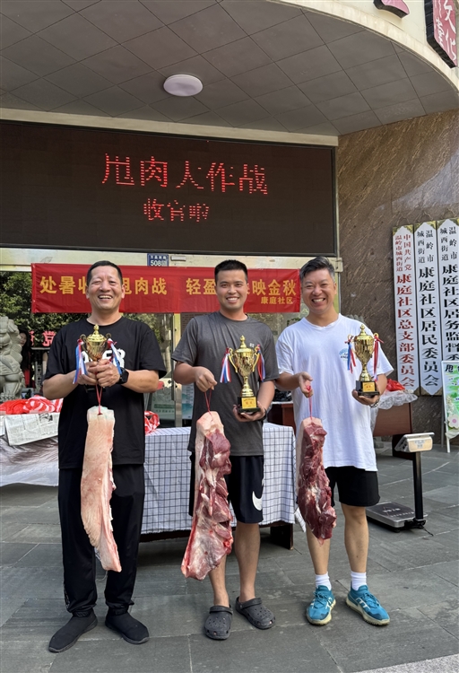 本次活动,社区兑现“减多少斤送多少斤猪肉”的承诺,无论减重14斤还是1斤,居民都领到了与减重数量相等的新鲜猪肉。此外,社区还根据减重排名颁发了定制奖杯和额外奖励,通过活动向居民传递科学减重、健康生活的理念。