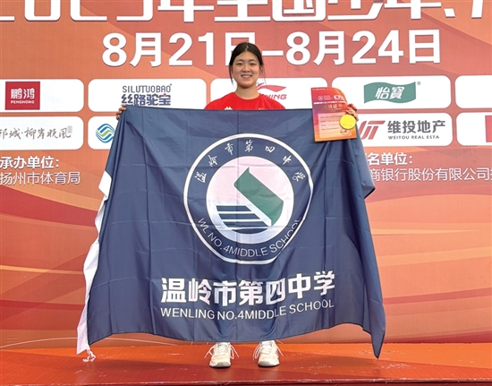本报讯(记者程以琳)8月24日,2025年全国少年儿童击剑锦标赛在扬州国际展览中心落幕,温岭籍击剑运动员高心妍代表浙江一队出战,最终斩获U16女子重剑团体冠军,成为台州首位全国少年儿童击剑锦标赛金牌得主,也为温岭市第四中学击剑队在全国赛事中再添一金。