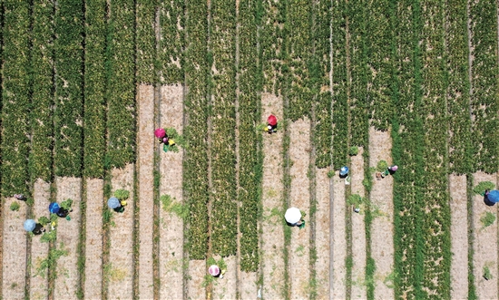 8月27日,城南镇沙头门村农民在山地里采收毛豆。