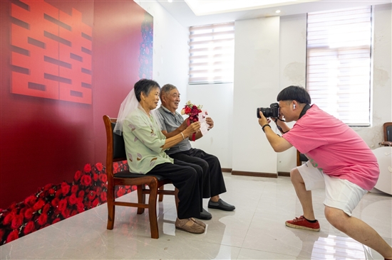 8月29日,城南镇妇联在后里村党群服务中心,免费为当地结婚10周年至60周年的夫妻拍摄结婚纪念合影,他们或并肩而立,或相视而笑,甜蜜瞬间成为了最珍贵的七夕记忆。