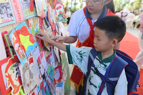 值此中国人民抗日战争暨世界反法西斯战争胜利80周年之际,学校还提前征集亲子制作的纽扣画、剪纸等红色作品。这些融合抗战元素的创意展品,增进了家校互动,传承了红色记忆,后续将在校史馆长期陈列。