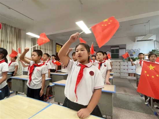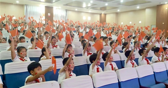 横湖小学组织师生观看阅兵仪式。 通讯员 潘海军 摄