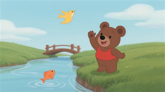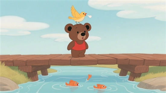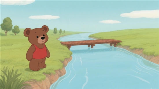 扩句:小熊总算走到桥对岸啦,他转过头看看那座小木桥,立马举起爪子开心地挥了挥,脸上还带着甜甜的笑呢!