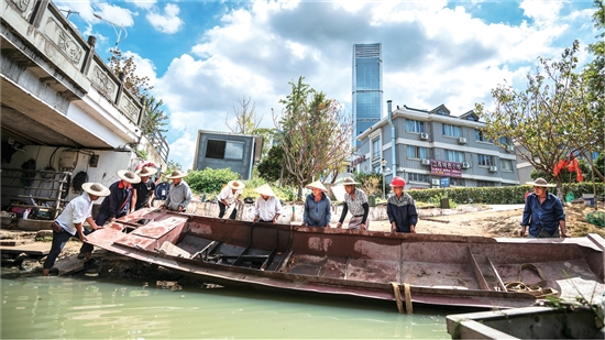 城西街道下洋应河道清理队成立于2013年,承担太平、城东、城西3个街道的河道清理工作,负责人应军辉曾荣获“温岭市最美河道保洁员”称号。该团队每年还对船只进行维保,今年已对11艘船进行了维保。