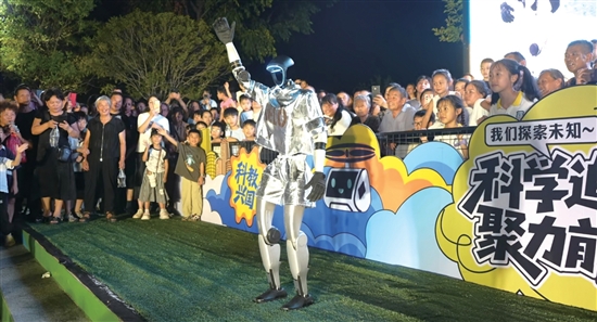 随后,机器人与无人机表演拉开了活动序幕。宇树人形机器人来到现场,以灵巧的动作和智能化的表现,赢得观众阵阵掌声。随着主场活动的全面展开,科普巡展互动区立即沸腾起来:震撼视觉的科学魔力秀;3米高变形金刚、齐天大圣震撼登场,还与市民进行“零距离”互动。