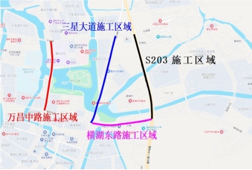 关于S203、万昌中路、三星大道、横湖东路 施工期间交通管制的通告