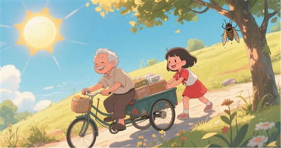 小月独自走在放学的路上,汗水顺着脸颊不停地往下淌(tǎnɡ)。当她路过一个小山坡时,看到一位头发花白的老爷爷正吃力地骑着装满货物的三轮车爬坡。老爷爷眉头紧皱,双脚用力蹬(dēnɡ)着踏板,可三轮车却像被施了“千斤重”魔法似的,慢吞吞地往上挪(nuó)。小月立刻跑过去,使劲儿推三轮车,老爷爷感觉车变轻了,回头一看,发现是小月在帮忙,他笑着说:“谢谢你呀,小同学!”小月摆摆手说:“老爷爷,不客气,这是我应该做的!”在两人合力下,三轮车顺利地爬上了坡。老爷爷欣慰(wèi)地夸小月懂事,小月心里甜甜的,像吃了蜜一样。