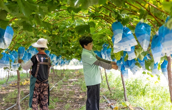 而这样的种植成果,则源于藤蔓式“T”型和“H”型现代种植技术。“在农科院等科研院校的助力下,我们的‘阳光玫瑰’植株整整齐齐,果实颗颗呈绿宝石般的色泽,糖度高、香味足,采摘期前后可持续4个多月,其中,特晚熟的‘阳光玫瑰’,出棚价比高峰上市期利润多出10%左右。”颜剑锋说。
